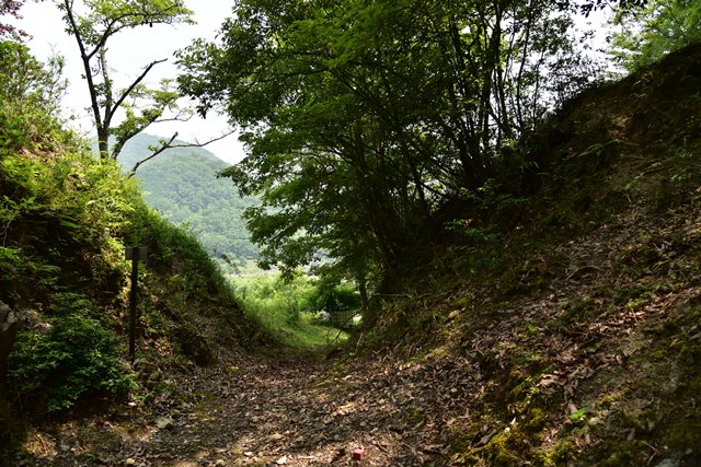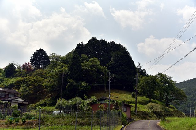 京都縦貫道の京丹波みずほインタを下り、左折し国道173号線に入ります。約15km先、川合口バス停付近で斜め右に入り、約300m先で左折し府道59号線に入ります。約2km先、右手上、旧川合小学校(2015年廃校)の前で反対側に左折し府道521号線に入り、すぐの川合川を渡ります。 道なりに約400m先を左折し約100m先を右折し、麓の小道を進みます。約200m先に案内板があり、ここから登ります。 車は説明板のところまでは入れません。府道から曲がった道の邪魔にならないところに停めてください。また、最後の小道の入口の民家に土佐犬がいますが、暴れるように吠えますのでびっくりしないように。(笑)