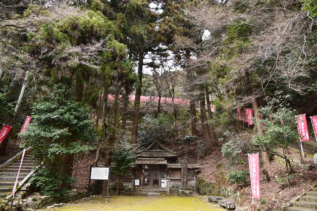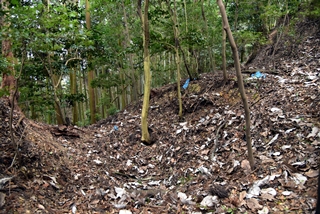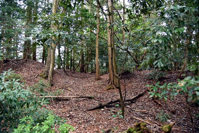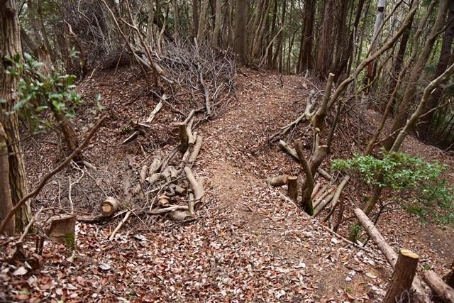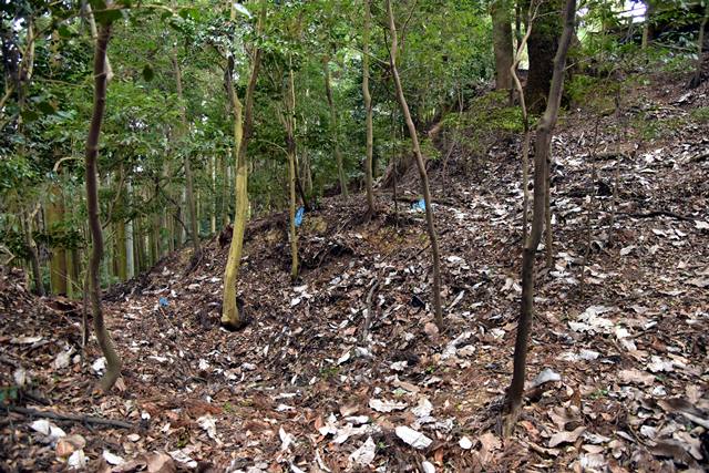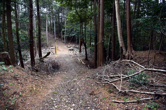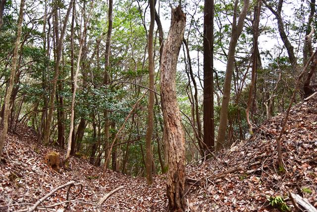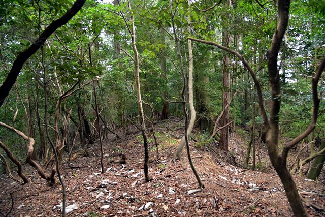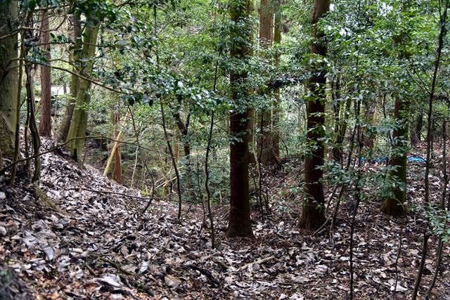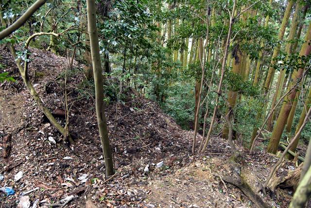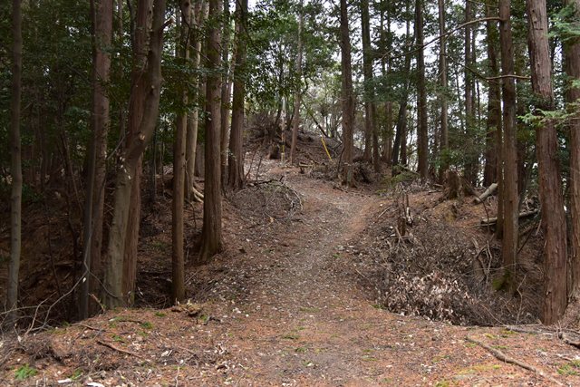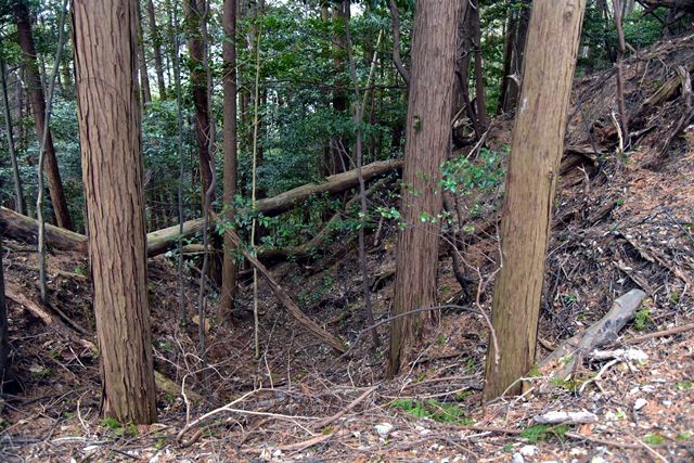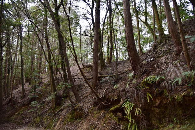 R館大学のO准教授が論考された上醍醐寺の城郭遺構について確認しに登ってみました。比高で400m、さすがにきつい(笑) 大文字山の如意岳城と同じくらいの比高でしたね。 下醍醐寺はなんどか行ってますが、上醍醐寺は初めてでした。ここは午後2時までに麓の女人堂の受付を通らないとその後の時間は登らせてもらえません。ただ、入山料は2024年に廃止になってますので、下醍醐寺境内を通らないで、下醍醐寺のフェンス沿いの外側を行けば無料で登れます。また、西国三十三カ所の十一番札所、准胝堂が2018年に落雷で焼失してます。今は下醍醐寺の観音堂で御朱印等は受けられます。登り口の女人堂から登り道にはずっと道標の石碑が建ってます。上醍醐寺の清瀧宮拝殿下まで十九丁です。四丁から五丁の間に豊臣秀吉が醍醐の花見をした際の花見御殿跡の平坦地があります。中間地点で十一丁というところです。十六丁でやっと尾根に登り、やや下がるようにして進むと上醍醐寺です。開山堂は十九丁の石碑から再び比高で50mほどつづら道を登って行きます。 さて、城郭遺構ですが、醍醐山山頂の北側、開山j堂の北側、奥の院の西側に残ります。奥の院は道が倒木が多く、開山堂から往復1時間のため、今回はパスしました。浅い堀切が複数あるようです。開山堂の背後はすぐ下に堀切が残っていました。その先の尾根は尾根頂部を削り込んで一騎駆け状にして両サイドに郭があるという形でした。郭側から見ると尾根が土塁に見えます。醍醐山側の遺構は醍醐山から北の斜面を下がると堀切があり、その先へ再度登って、下りだしたところのもう一つ堀切がありました。この三か所、確かに堀切でした。規模は小さな堀切ですが、はっきりと堀切とわかる形状が残っていました。ただ、どこを守るための堀切なのか、どういう意図で構築されているのか、よくわかりません。上醍醐寺を郭として北側の尾根を守ると言う事なんでしょうかね。もし、城郭遺構を見学に行かれる方がおられましたら、くれぐれも自己責任でお願い致します。 三宝院には伏見城からの移築とされる唐門(国宝)が残ります。ただ、伏見城からの移築は確定ではないようです。 下醍醐寺 秀吉醍醐花見の花見御殿跡 上醍醐寺 城郭遺構 |