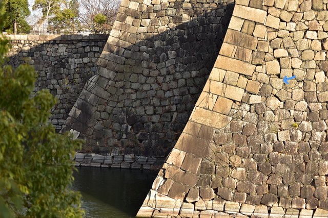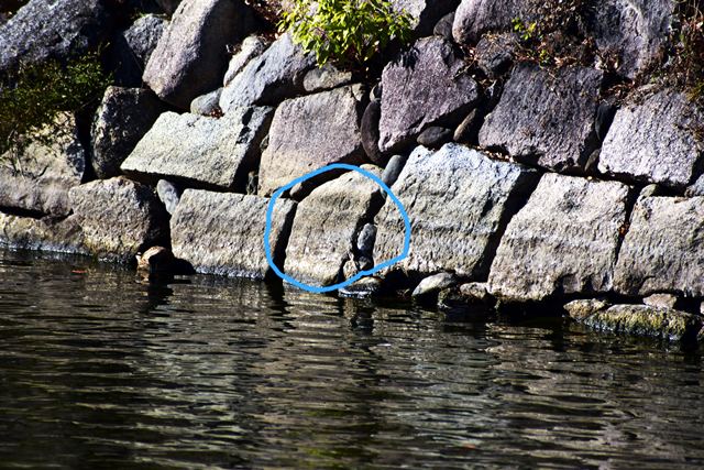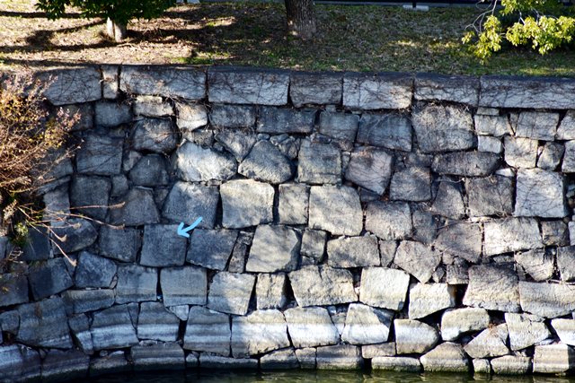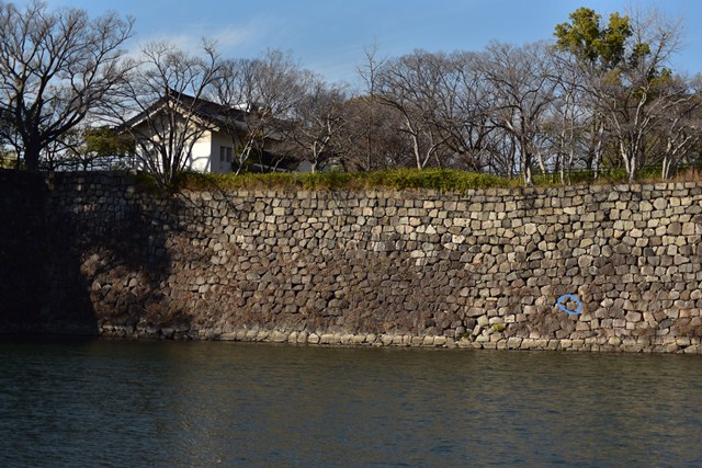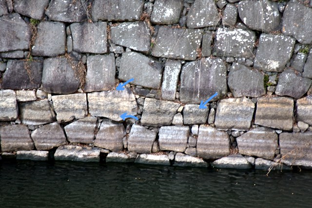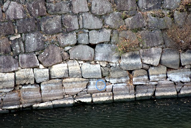 | 西の丸空堀近くの内堀石垣(隠し郭から) |