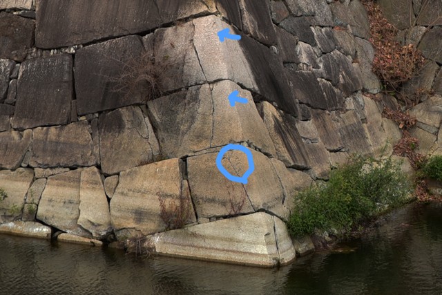 | 本丸隠し郭西下内堀石垣(西の丸から) |