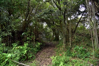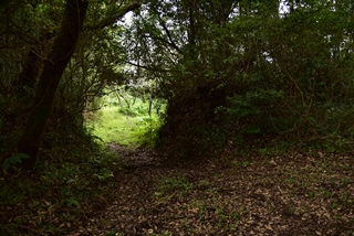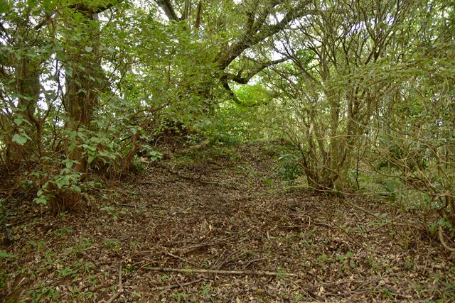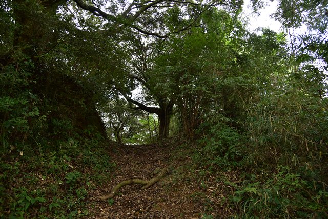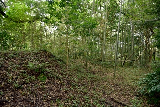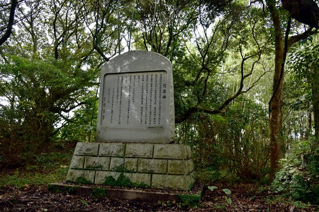 元々は城山公園として整備されていたようですが、現在は、道は倒木だらけ、公園は草木が伸び。薮に近くなってました。公園は東郭に当たるようで奥に一段上がったところが主郭のようです。主郭には細川氏が建てられた慰霊碑がありました。左手下の下りると細長い郭があり、西郭にあたるようです。 主郭には土塁が残る感じです。主郭と西郭間は虎口状で、土塁があります。城域としてはもっと大きく尾根上にあるようですが、薮過ぎて主要部を見るだけで退散しました。