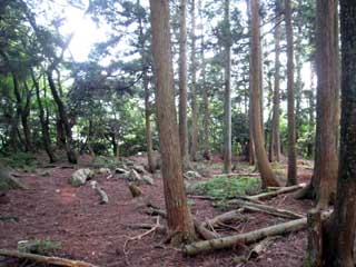 彦根方面より国道21号線で来ると、梓河内の信号で右折し、すぐに名神高速のガードをくぐり集落に向かいます。集落手前に左折する道があり、案内板の立っています。その先は林道ですが、入口にゲートがあります。この林道稗谷線に入り麓より城跡まで5Kmと表記があります。(比高で300mくらいでしょうか) この林道を進みます。城跡下の尾根は幅広の尾根ですが、今は土砂が両サイドに積み上がってますが、乗用車数台は停められます。ここより10分(比高で40mほど)ほど登りますと城跡です。 <2018年時点、駐車場先の林道(高屋城方面)は通行止めでした。> |
