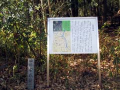 名神高速道茨木インタを下り、国道171号線を京都方面に進みます。1.2km先の西川原西の信号を左折し、府道46号線に入ります。900m先の名神高速道下の信号(耳原交番前)でやや右手方向に府道は進みます。2.1km先で左折し、すぐにまた左折し坂を上ります。150m先右手に登る急坂の道がありますので、ここに右折します。150mをいっきに急坂を登ると茨木市配水場です。前はこの正門横に説明板と石碑がありましたが。今は麓に説明板と石碑があります。元の説明板の裏側の小道を5分も歩けば城跡ですが、配水場への坂道は立入禁止となっているため、麓の説明板から斜面を登るしかないですね。