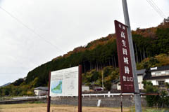 国道2号線姫路バイパスの姫路ジャクションから播但連絡道で80Km先(あるいは山陽自動車道の山陽姫路東インタより播但連絡道で70Km先、中国自動車道福崎インタより同連絡道で55Km先)の和田山インタ、あるいは、舞鶴若狭自動車道の春日インタから国道483号線を経由し北近畿豊岡道を進み約60km先が和田山インタで、ここを下り、国道312号線を北に進みます。約4km先、一本柳の信号で左折し国道9号線に入ります。約6.5km先、宮田の信号で右折し県道10号線に入ります。すぐに糸井橋を渡り、約1.6km先の信号で斜め左手(県道10号線)に進みます。約1.4km先で右手の糸井小の横を通ります。さらに、約600m進んだ左手に「高生田城跡」登り口の看板と説明板があります。ここを左折し、30mくらい先の寺の前でもう一度左折、約50m先にもう一度城跡の標識があるところで右折し階段を上り墓地の横を過ぎると城跡に入るフェンスです。フェンスを越えると標識があり、左手へフェンス沿いに200mほど行くと右手へ支尾根の斜面を登ります。つづら道を支尾根の先端まで登ると城域に入ります。