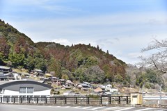 西名阪国道(国道25号線)の五月橋インタを下り、左折し国道25号線(一般道)に入ります。約1.6km先、診療所前バス停付近で左折し県道80号線に入ります。約3km先で左折し広瀬地区に向かいます。約1.3km先右手が名張川に架かる広瀬橋です。橋から200mくらいの右手道路沿いに路駐して左側の細道を進みます。山に向かっている道を登っていくと集落が切れた一番上の所に(山中に入る直前)「山城入口 100m先」の標識が立ってます。昔、民家があったところが基礎だけになっている前に立ってます。ここから細道を約100m進んだところの左側細道を登ります。二つ目の「山城入口」の標識があります。50mほど進むと広い平坦地に出ます。正面が城山の斜面ですが、登るのは一番左手の裾、巨石がある箇所から取り付きます。右手に登っていくとすぐに遺構が現れます。