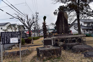 | @ おおとみやかた A住所:土岐市泉大島4丁目 B目標地点:伍所公園 C形式:平城 D比高:ーーm E現況:公園・宅地 F遺構等:碑・説明板 G時代/人物:平安期/源氏 or 室町期/土岐氏 H満足度: 凸 I最寄の駐車位置からの主郭までの所要時間:1分 J撮影・訪問時期:2022年03月 中央自動車道の土岐インタを下ります。 国道21号線を右折し土岐市街地に向かいます。約600m先の大富の信号を右折し国道19号線に入ります。約500m先の泉仲森町の信号で左折し、約50m先を左折します。約300m先を右折し、約100m先が伍所公園です。 住宅街の公園の南端に「土岐源氏発祥の地」の石碑と説明板があるのみです。 源頼光(清和源氏三代で多田源氏<摂津源氏>)の子の頼国、あるいは、その子の国房が平安中期<頼国が天喜元年(1058年)に死去してるのでこの頃以降か?>に築いたとされます。五代の光衡が一日市場館(神戸館)に移り土岐氏を名乗ったとされます。光衡の子の光行、孫の光定は浅野館に住し、光定の子の頼貞は再び大富館に居を移し、建武の新政で美濃守護となり、南北朝期は足利尊氏に従いました。頼貞の子の頼遠は歴応二年(1339年)、本拠を長森城に移しました。 |