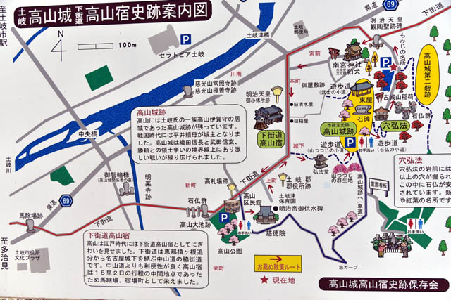 | @ あさのやかた A住所:土岐市肥田浅野笠神町3丁目 B目標地点:多度公園・笠神公園 C形式:平城 D比高:ーーm E現況:公園・宅地 F遺構等:碑・説明板2 G時代/人物:鎌倉期/土岐氏 H満足度: 凸 I最寄の駐車位置からの主郭までの所要時間:1分 J撮影・訪問時期:2022年03月 中央自動車道の土岐インタを下ります。 約600m先の大富の信号を直進し、国道19号線を横切ります。約400m先、新土岐川橋で土岐川を渡ります。約100m先で左折し、約80mでまた左折、約50mで右折し約100m先、左手土岐川側が駐車場、右手が多度神社・笠神公園です。笠神公園は元はプールのあった場所で、現在は笠神公園として再整備され、一角に多度神社があります。 土岐光衡の子の光行は承久の乱<承久三年(1221年)>の頃に一日市場館よりここの館を移しました。子の光定もここを居館としますが、光定の子の頼貞は大富館の居を移しました。 |