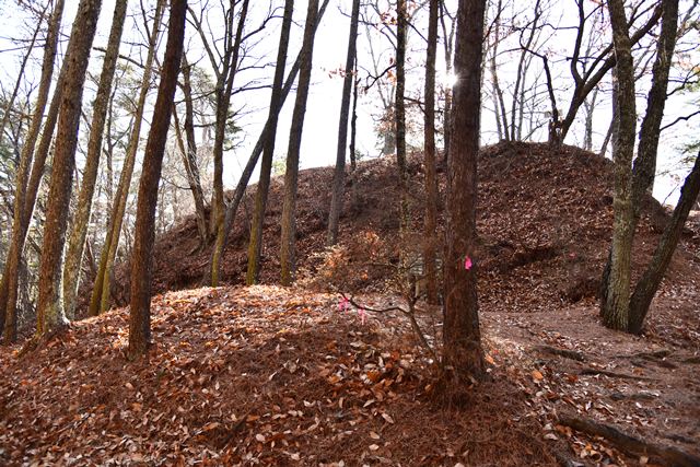 2002年以来、2025年に再訪しました。麓の駐車場や模擬櫓門などしっかりと整備されていました。典型的な戦国の山城で、防御は高地の城域、堀切・堅堀、切岸です。ただ、本城主郭手前の段郭は居住性を感じる広い郭が段郭として続き、これは印象に残ります。