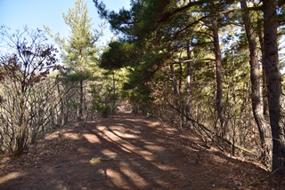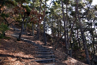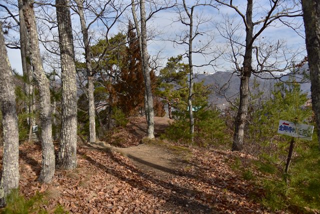 上信越自動車道の上田菅平インタより国道144号線に入り、約2km先、上野の信号を越え、約200m先の伊勢山の信号で左折し砥石米山城街道に入り、上野の集落を通り、約500m先の十字路で右折します。約100m先を右折、約100m先の左手が駐車場です。北へ向かう道から模擬櫓門をくぐり、尾根を登りだします。途中道標がありますので安心です。10分程度で東西に走る尾根に着きます。左に行くと米山城(約10分)、右に行くと砥石城(約15分)となります。(あるいは陽泰寺まで行き、左手より登ると大手口(砥石城と本城の間)に至るようです。)