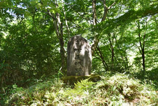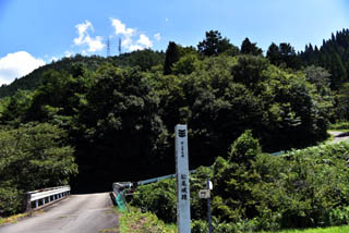 A郡上市大和町大間見 旧:郡上郡大和町 B丁泉寺・道の駅古今伝授の里やまと 東海北陸自動車道のぎふ大和インタを下り、右折して県道52号線に入ります。約300m先の野口の信号を直進して西河橋を渡ります。橋の先のぎふ大和インタ東の信号を左折し国道156号線に入ります。約3km先の下剣南の信号を右折し県道317号線に入ります。約1km先を右折し大間見川を渡ります。正面の丘が城跡です。橋を渡ってすぐのT字を右折し道なりに進みます。約100m先の左手が城跡です。 丘の頂部の平坦地(主郭)に唐突に城址碑がありました。 |